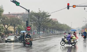 Hàng loạt xe máy cố vượt đường tàu trước mặt CSGT