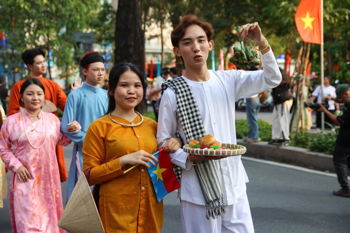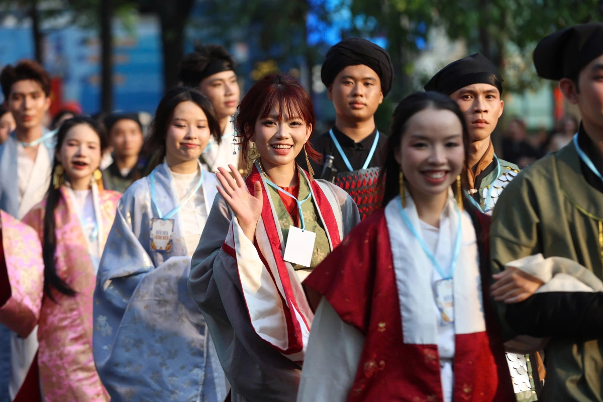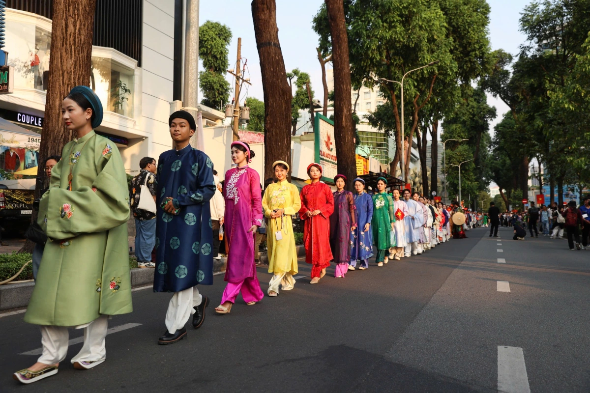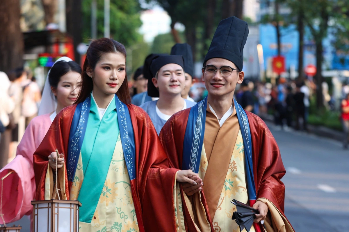 Các thành viên của nhóm Vi cự Việt Nhân diễu hành trên đường Pasteur trong bộ giáp phục từ thời Đông Sơn đến các triều Lý, Trần, Lê, Nguyễn. Phó nhóm Trần Đình Bảo Trung cho biết mọi người dựa theo các tư liệu lịch sử để mô phỏng những bộ giáp phục từng thời kỳ, hy vọng góp phần giúp cộng đồng hiểu hơn về một loại cổ phục của dân tộc.