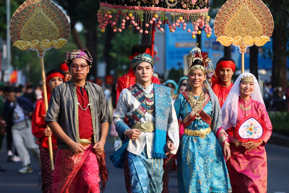 Các bạn trẻ tái hiện đám cưới của người Chăm ở thế kỷ thứ 17.