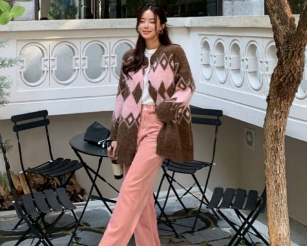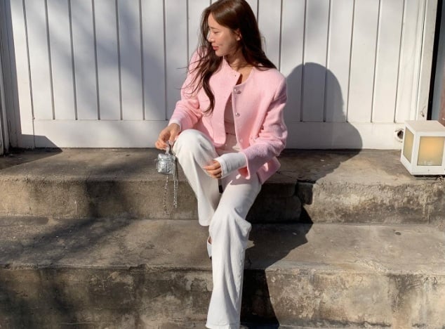 Bạn cũng có thể thử cách kết hợp giữa áo thun trắng và quần hồng pastel, sau đó khoác ngoài một chiếc cardigan họa tiết. Công thức này không chỉ tạo điểm nhấn độc đáo mà còn mang lại sự sinh động, trẻ trung cho tổng thể trang phục.