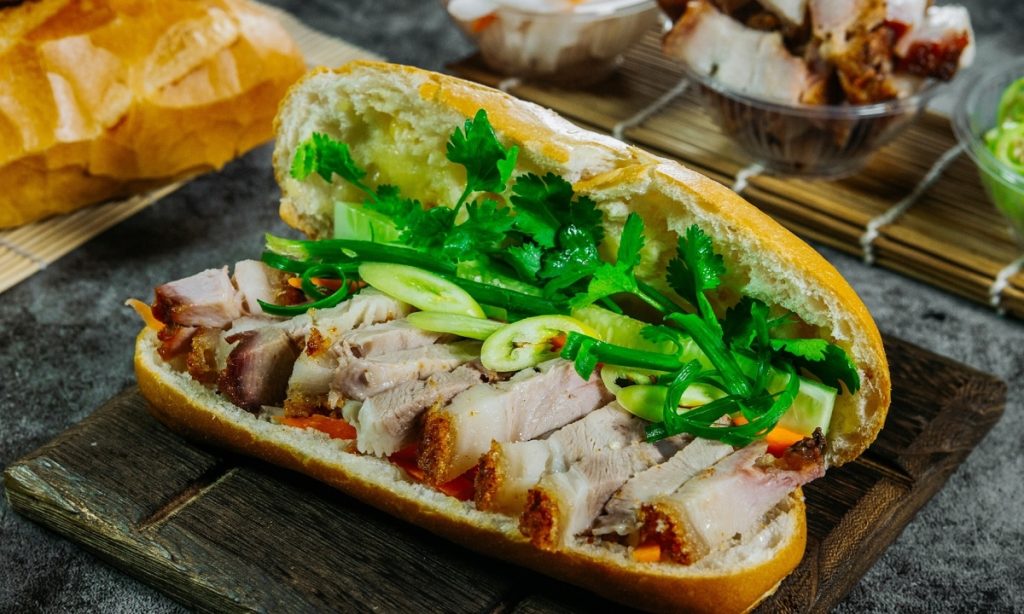 Hình ảnh bánh mì heo quay được quảng cáo trên website của tiệm.