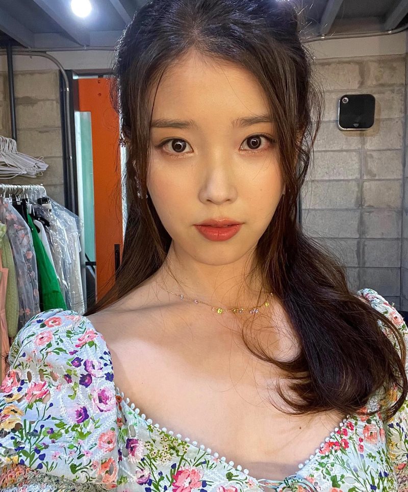 IU áp dụng kiểu tóc buộc nửa khá thường xuyên. Đây là style tóc đậm chất nữ tính, yêu kiều. Tóc buộc nửa giúp tạo độ gọn gàng cho nhan sắc nhưng vẫn dịu dàng, bay bổng không kém tóc xõa.