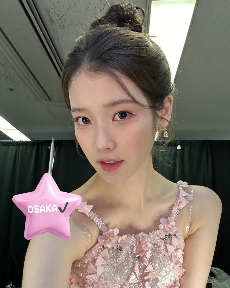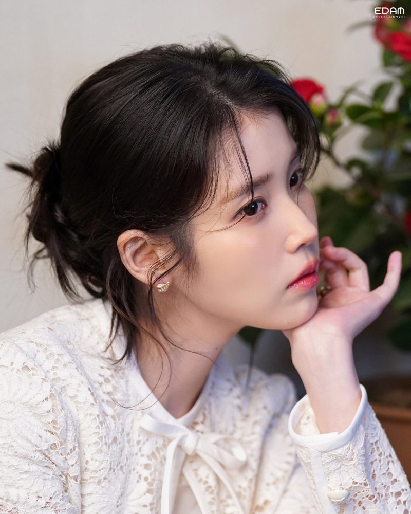 Những lúc để tóc búi thấp, IU thường tô điểm khuyên tai, từ đó vẻ ngoài long lanh và sang chảnh hơn.