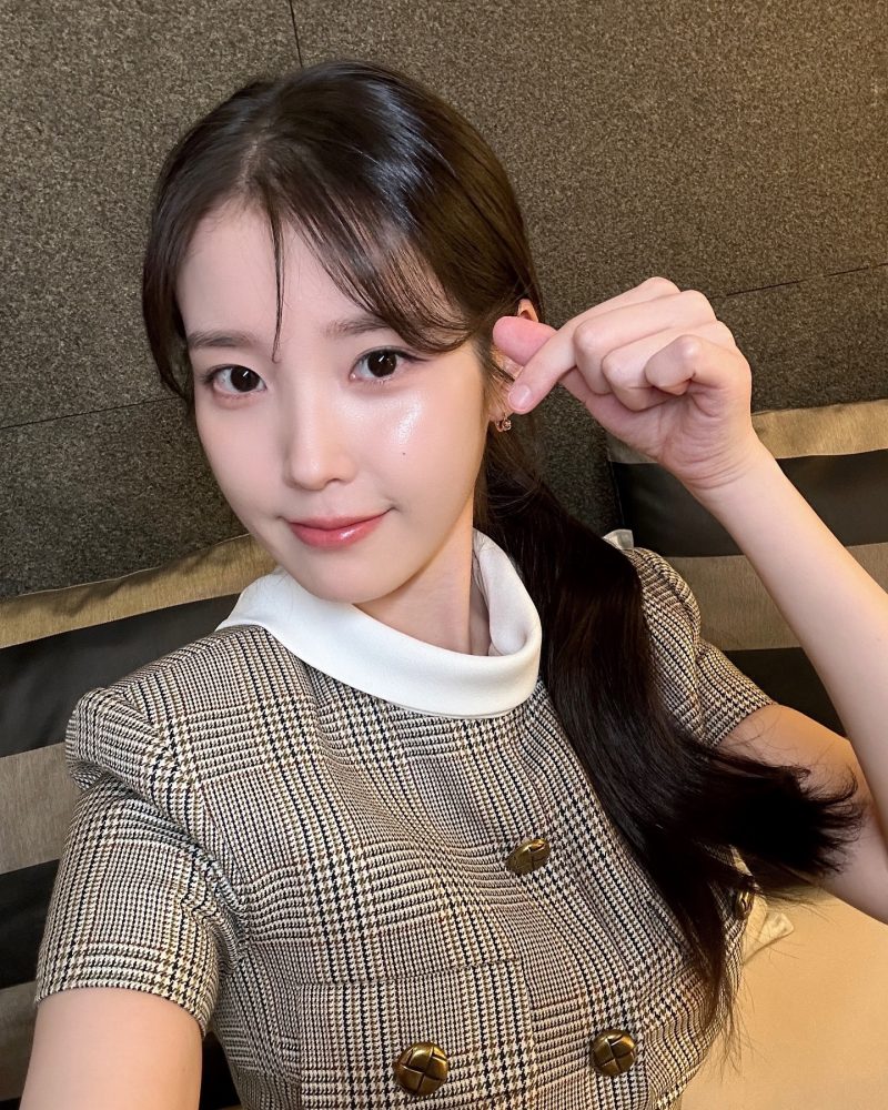 Tóc buộc đuôi ngựa có độ gọn gàng và phù hợp để áp dụng trong mùa hè. IU thường lựa chọn kiểu tóc buộc thấp và style tóc này giúp vẻ ngoài của IU trở nên thanh lịch, trang nhã hơn.