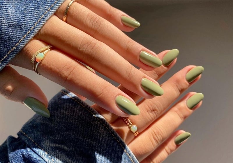 Tông xanh matcha là sự pha trộn hoàn hảo giữa sắc xanh lá dịu nhẹ và ánh vàng ấm áp, tạo nên vẻ đẹp thanh lịch. Kiểu sơn trơn bóng hoặc lì sẽ phù hợp với những ai yêu thích sự đơn giản, trong khi hiệu ứng ombre xanh matcha pha sữa hay họa tiết hiện đại như kẻ caro, chấm bi sẽ giúp bộ móng thêm phần cá tính.