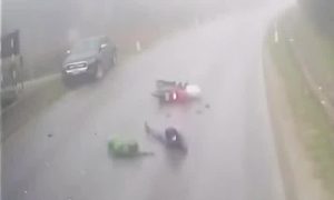 Xe bán tải mất lái trong sương mù gây tai nạn liên hoàn
