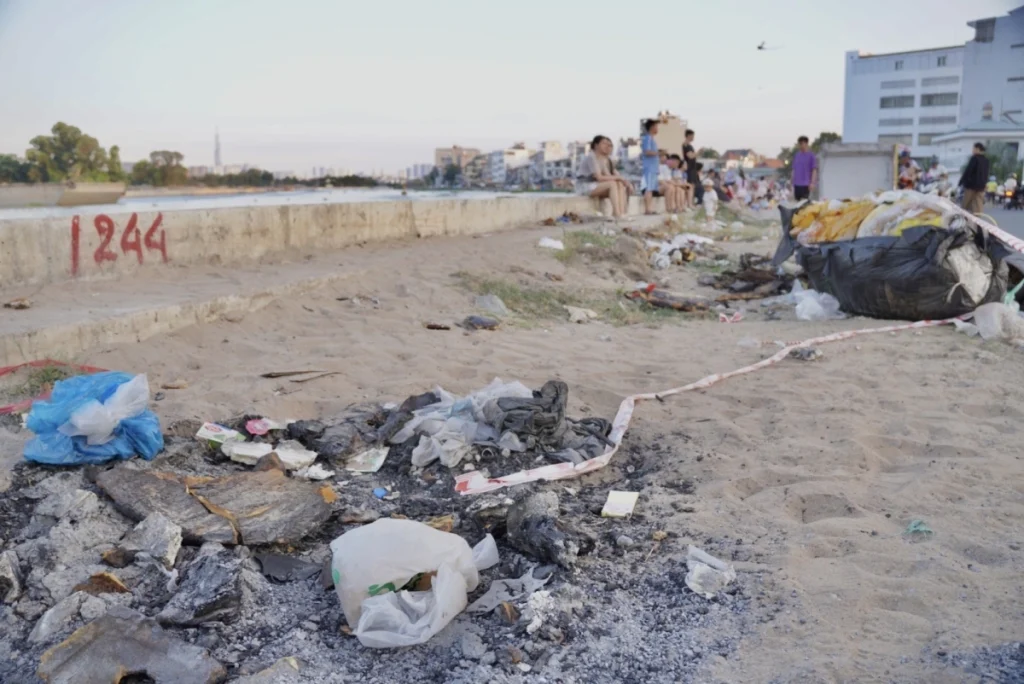 Bãi cát ven sông nhiều ngày qua được ví như “bãi biển mini” giữa lòng thành phố, thu hút nhiều người đến trải nghiệm sau khi xem các video trên mạng xã hội. Tuy nhiên, không ít người đến đây tỏ ra thất vọng khi chứng kiến cảnh rác thải xuất hiện khắp nơi.