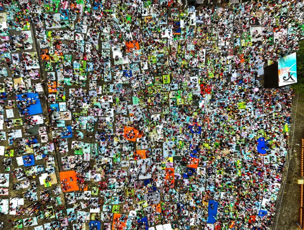 Dưới chân núi, biển người dựng lều, cắm trại, chuẩn bị cho mùa hành hương lớn nhất trong năm tại điểm tâm linh này.
