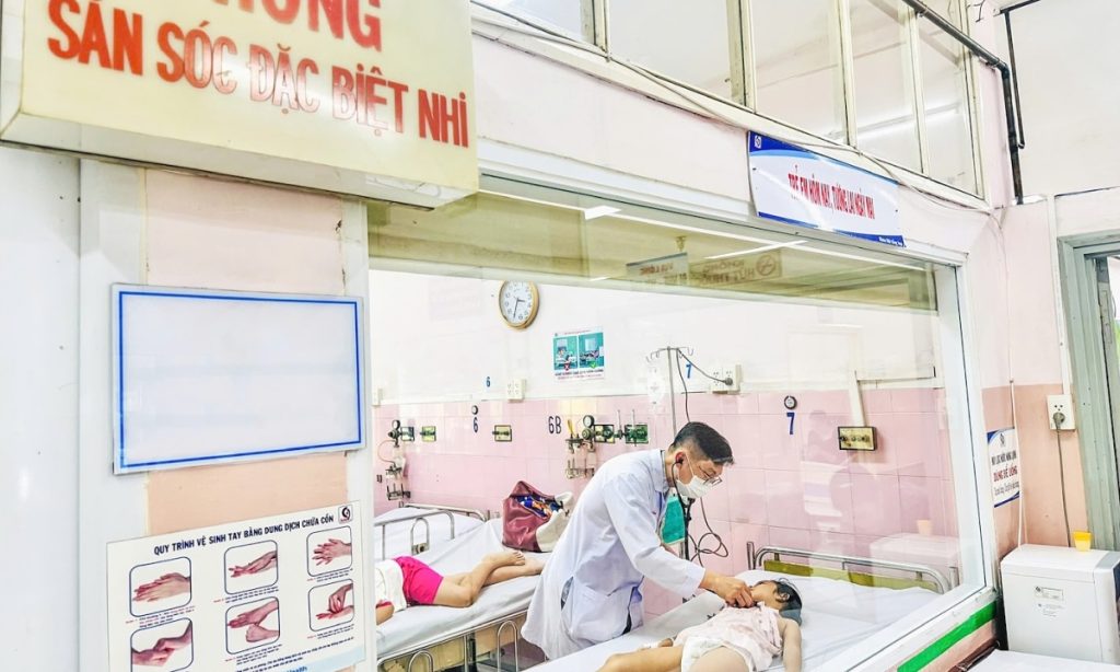 Bệnh nhi nghi ngộ độc thực phẩm điều trị tại Bệnh viện Nhân dân Gia Định. Ảnh: Minh Toàn