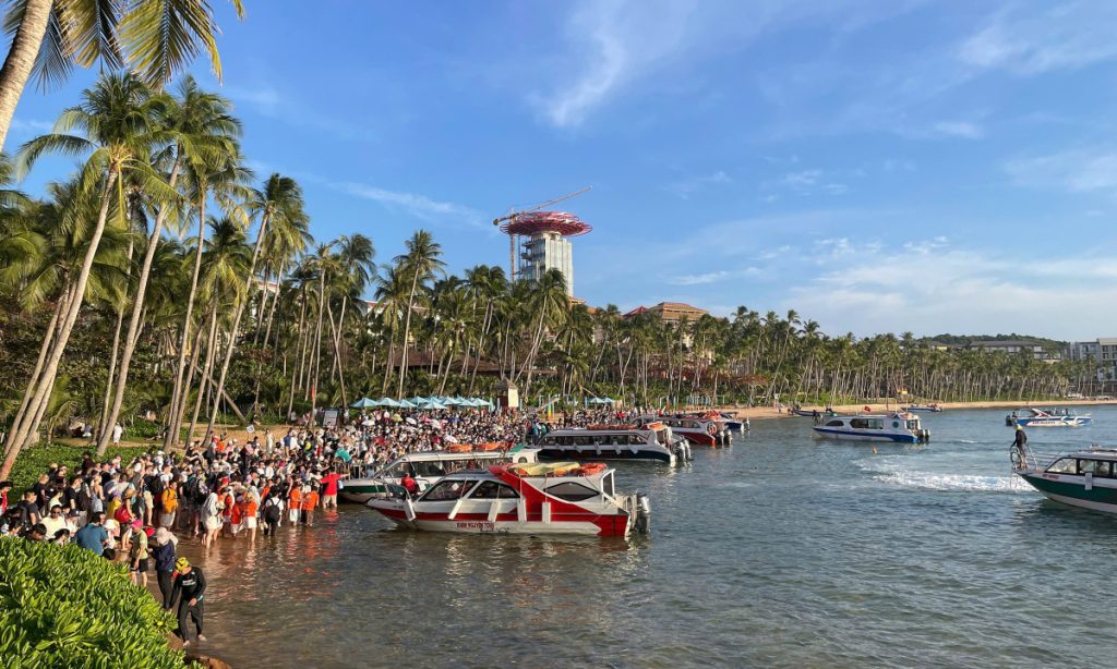 Du khách lên cano rời đảo Hòn Thơm. Video: Anton Morozov