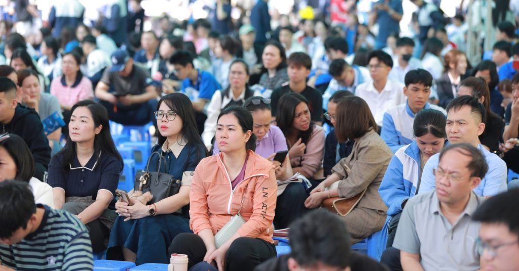 Hàng nghìn phụ huynh và học sinh chăm chú lắng nghe tư vấn tại Ngày hội tư vấn tuyển sinh – hướng nghiệp 2026 ở Hải Phòng – Ảnh: DANH KHANG
