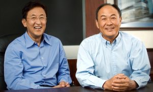 David Sun và John Tu, hai nhà đồng sáng lập công ty Kingston Technology, nằm