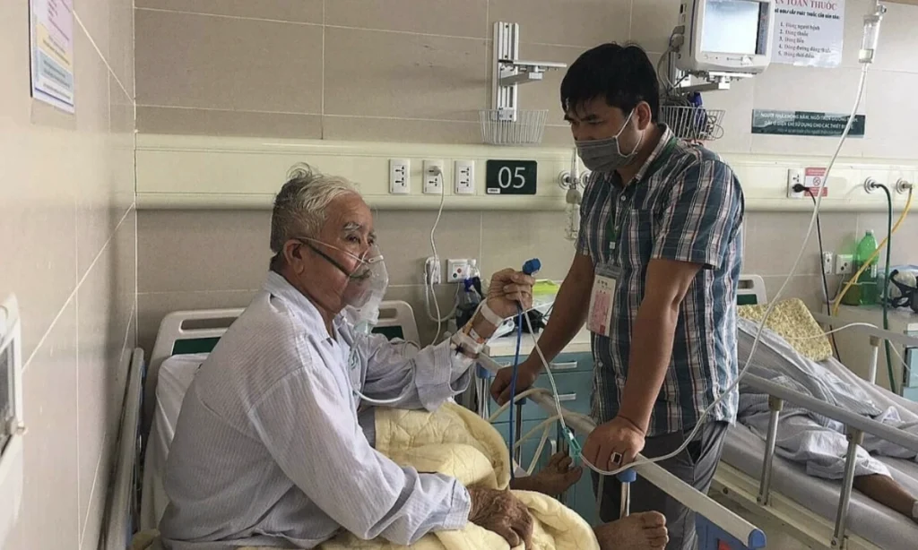 Một bệnh nhân COPD đang điều trị tại Bệnh viện Bạch Mai. Ảnh: Lê Nga