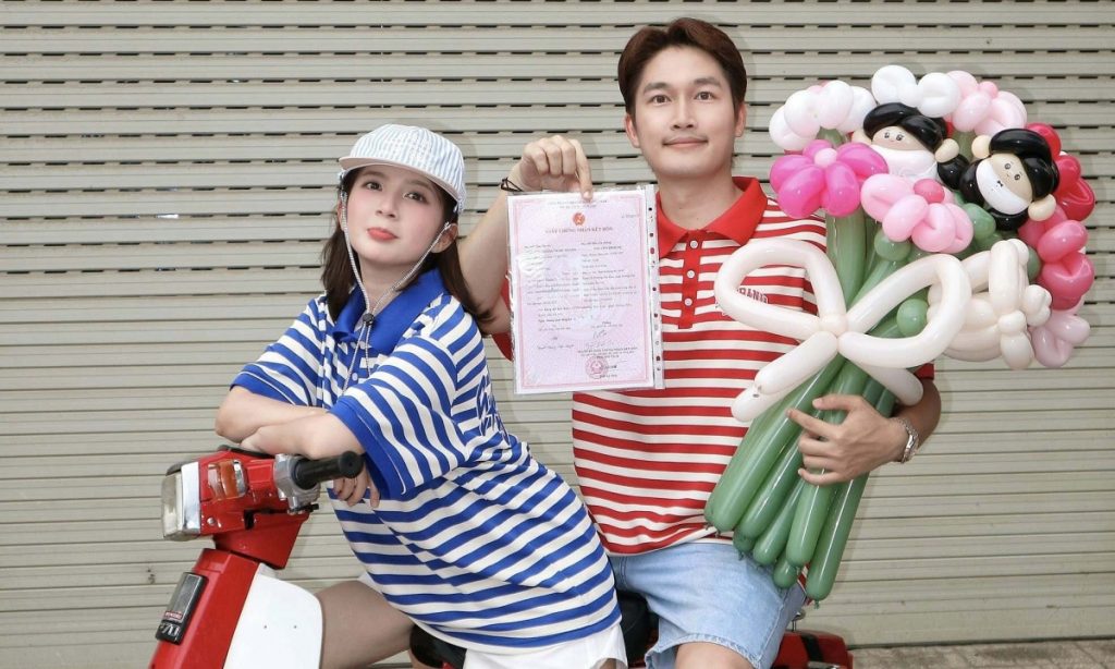 Vợ chồng Ngọc Huyền – Đình Tú khi đăng ký kết hôn.