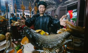Dựng cỗ cá chép nằm võng trăm triệu mừng tuổi lên lão