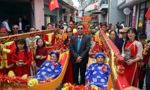 Cụ thượng thọ nằm võng cho con cháu rước quanh làng