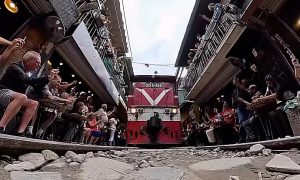 Phạt người đặt camera giữa đường ray ở phố đường tàu