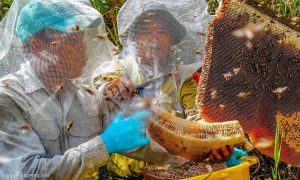 Theo chân thợ rừng gác kèo dẫn dụ ong mật làm tổ