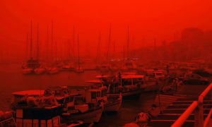Bầu trời Hy Lạp rực màu đỏ cam do bụi sa mạc