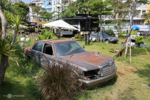 Quán cà phê trang trí bằng cần cẩu, xe buýt cũ ở TP HCM
