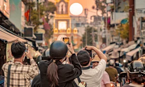 Khách săn ‘Mặt Trời trứng muối’ trên nóc nhà thờ trăm tuổi ở TP HCM