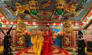 Khách trải nghiệm ngồi ngai vàng, khoác long bào ở TP HCM