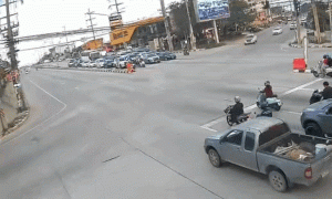 Từ một hướng, một xe bán tải tăng tốc ngay khi đèn xanh và chạy