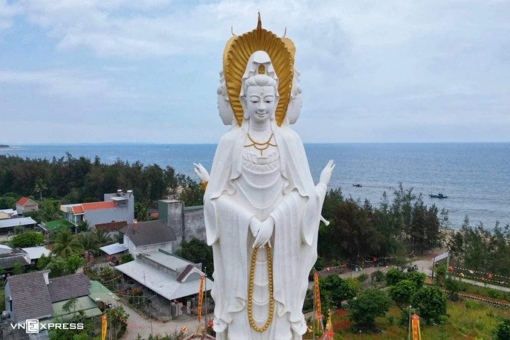Đại đức Thích Hạnh Nhân, Trụ trì chùa Đức Lâm cho biết tượng được xây dựng từ đóng góp của các mạnh thường quân, phật tử và người dân địa phương. Tôn tượng có ba mặt quay về ba hướng: hướng biển, khu dân cư và nghĩa trang.