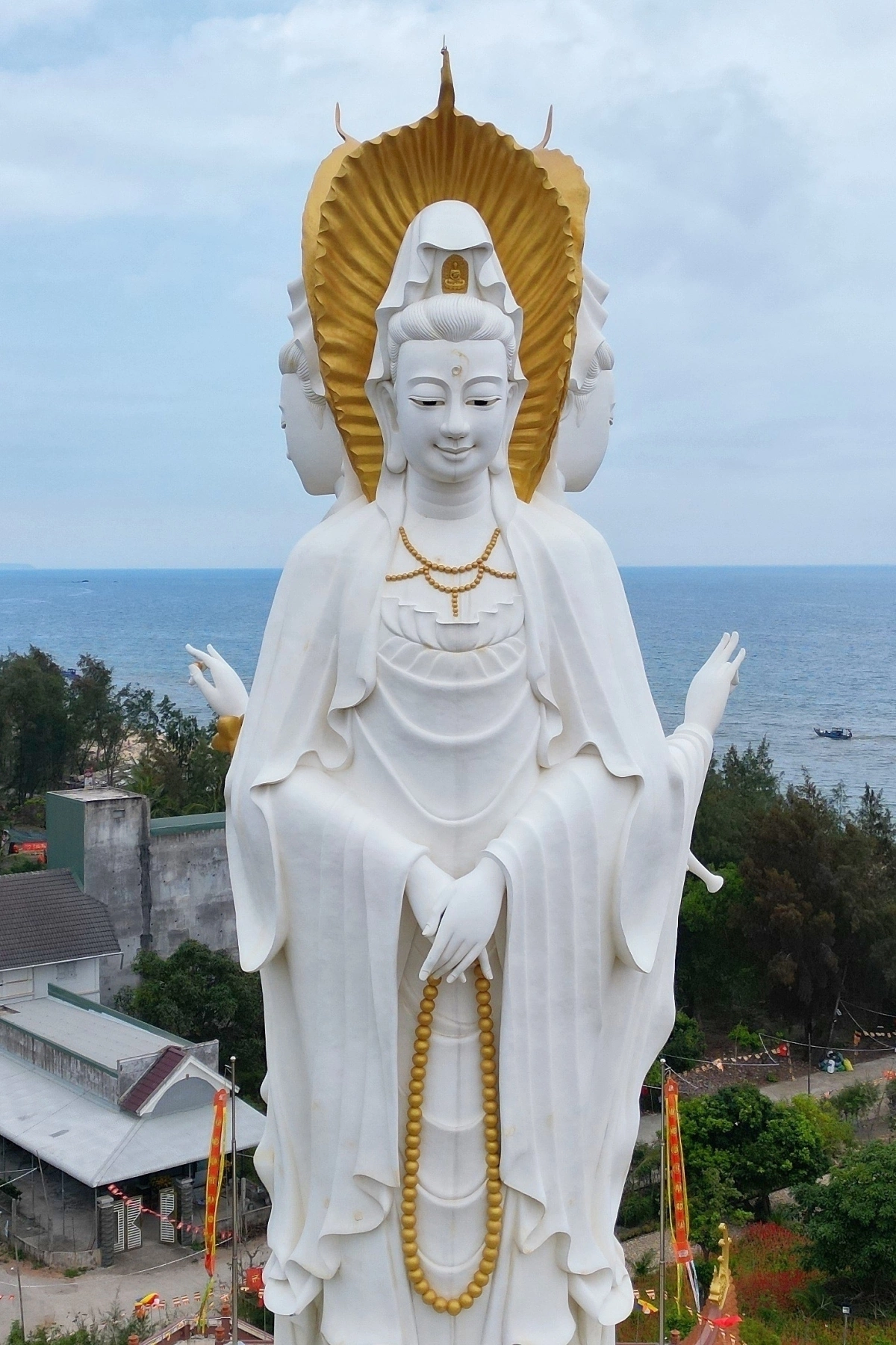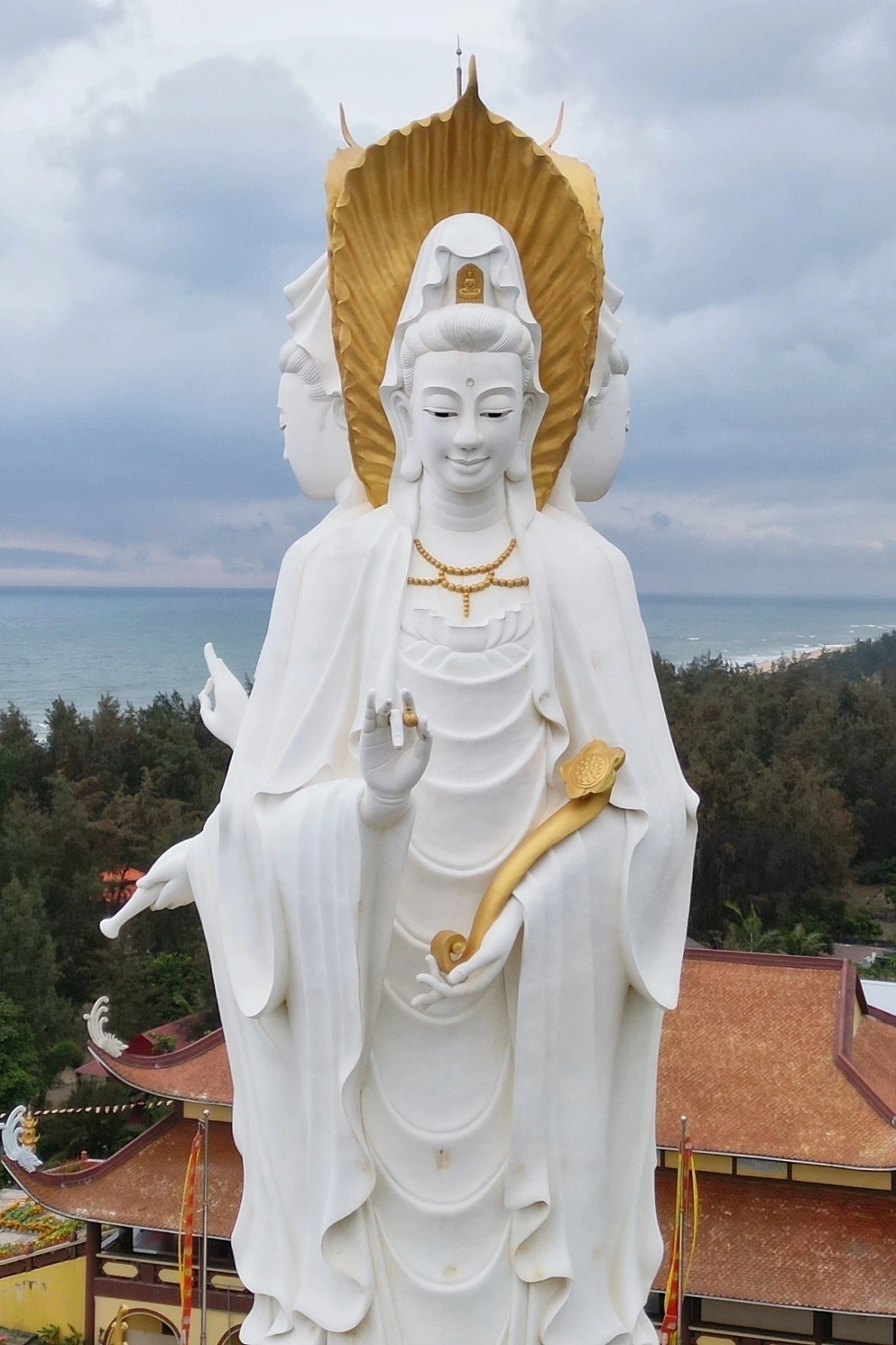 Tượng Quan âm hướng Biển Đông là Quan âm Bồ tát cầm bình cam lộ, gửi gắm mong ước những cơn bão qua đi nhẹ nhàng. Mặt hướng khu dân cư là Quan âm Như ý cầu nguyện bình an cát tường. Mặt hướng nghĩa trang là Quan Âm tiếp dẫn những linh hồn về miền cực lạc.