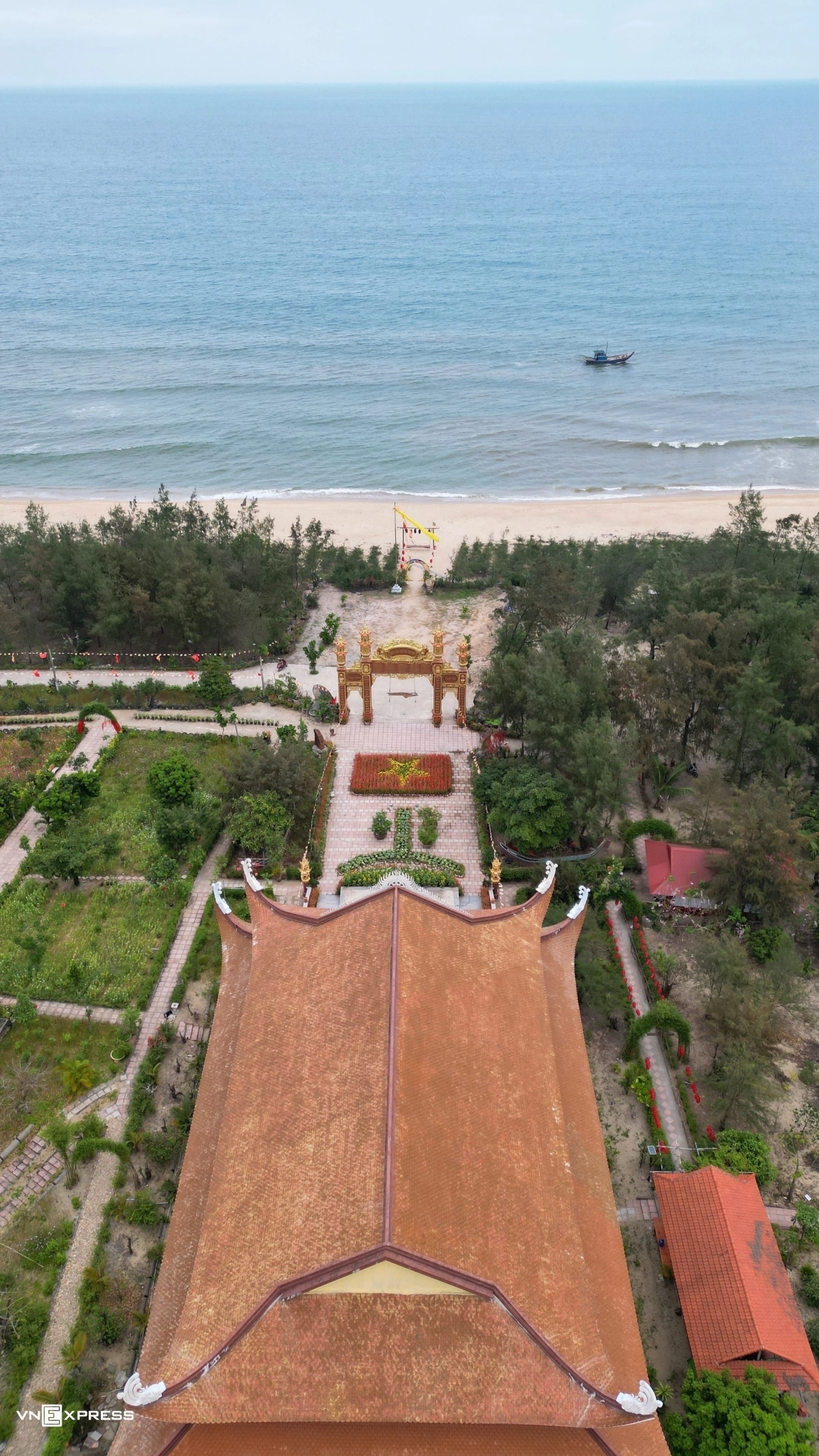 Cổng chùa Đức Lâm quay về phía biển, phía trên được khắc lời gửi gắm, ước nguyện an lành cho ngư dân.