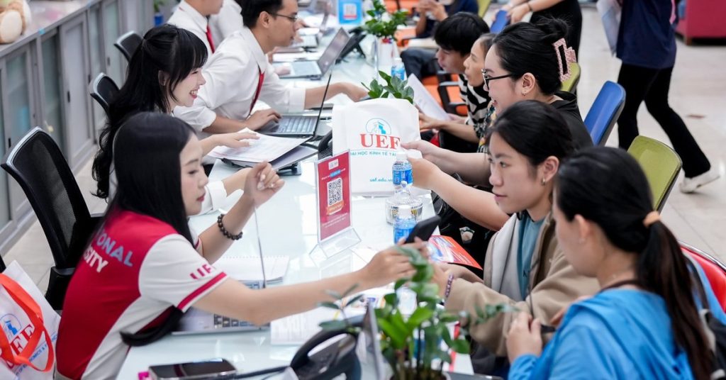Sinh viên Trường đại học Kinh tế – Tài chính TP.HCM nộp học phí – Ảnh: NGỌC BÍCH