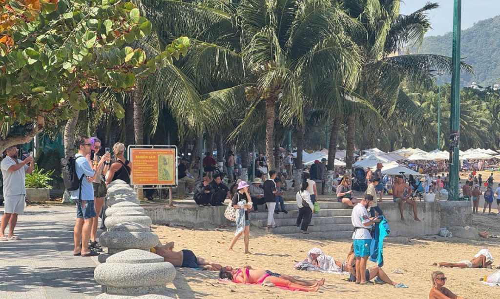 Khách quốc tế đến Khánh Hòa tắm biển dịp Tết Nguyên Đán. Ảnh: Bùi Toàn