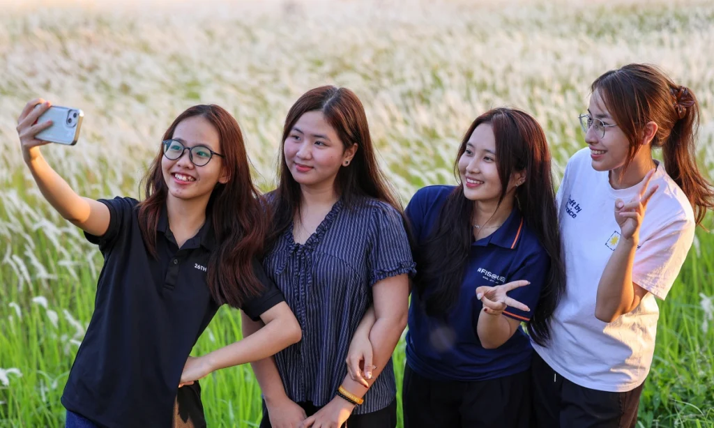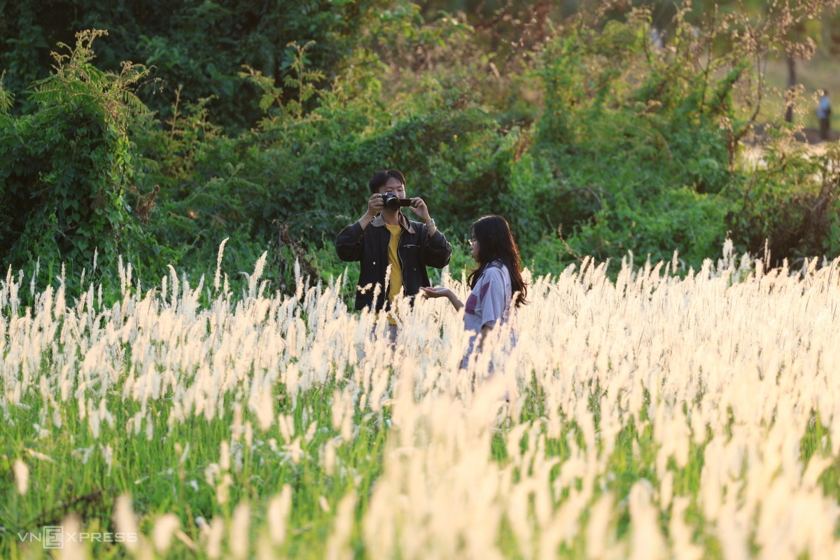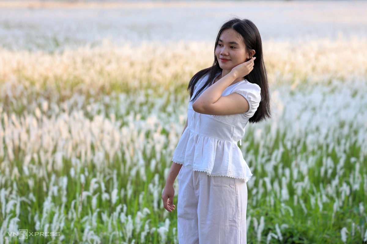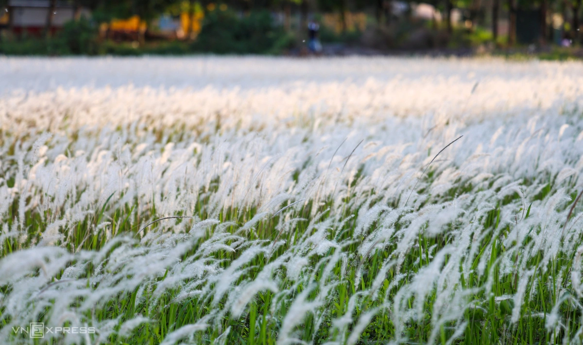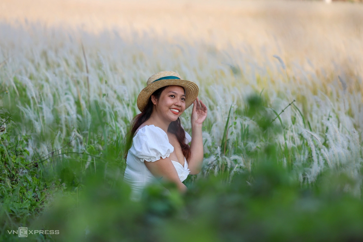 Ngọc Thắm, sinh viên năm cuối Đại học Quốc tế cho biết cỏ lau nở trắng tạo nên khung cảnh thơ mộng. “Năm nay hoa đều và đẹp, ai cũng mê”.