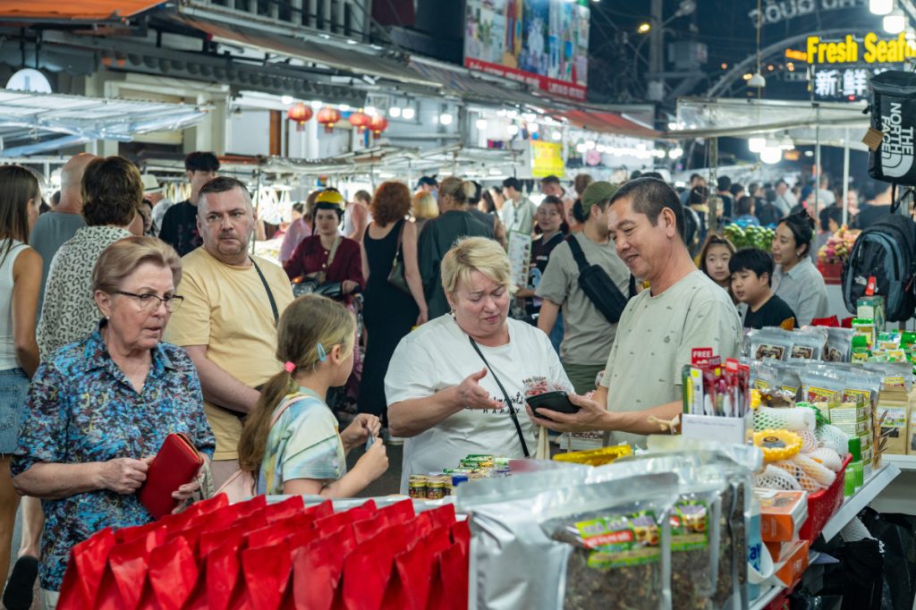 Khách nước ngoài đi chợ đêm Phú Quốc tháng 1/2026. Ảnh: Trương Phú Quốc