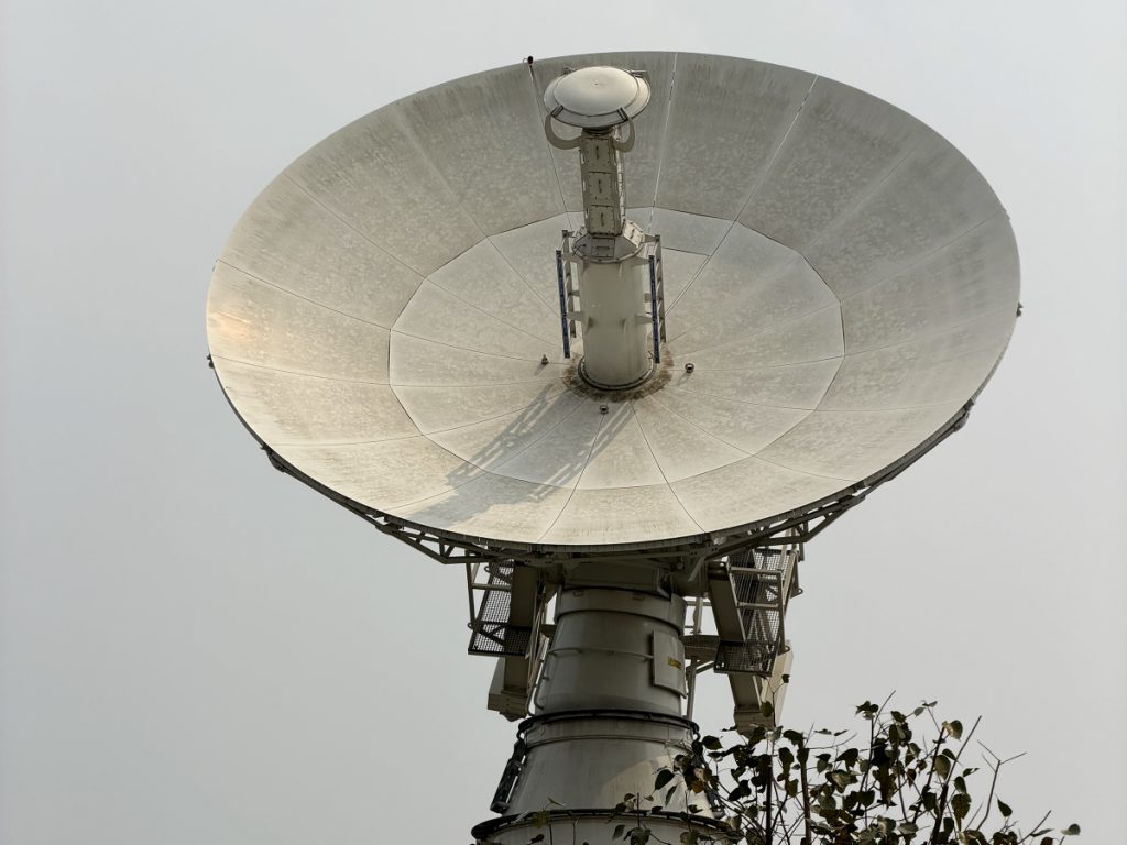 Anten đường kính 9,3 m đặt trong Trung tâm Vũ trụ Việt Nam. Ảnh: Lưu Quý