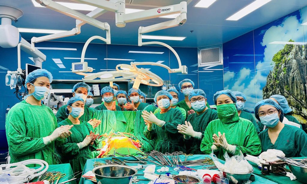 Ekip bác sĩ vỗ tay sau ca ghép phổi thành công. Ảnh: Quỳnh Hương
