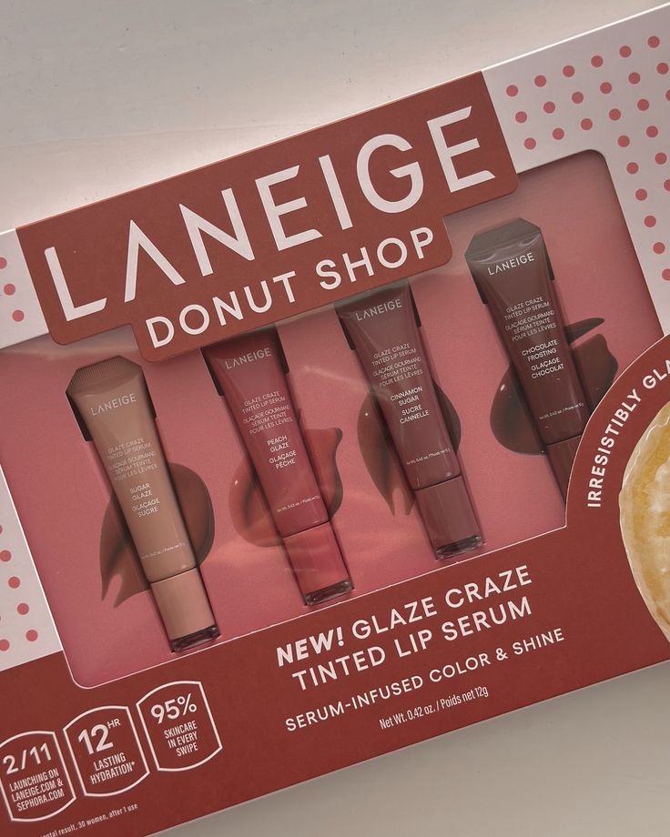Bảng màu của Laneige Glaze Craze Tinted Polypeptide Serum cũng cực kỳ thú vị với 6 màu, lấy cảm hứng từ những chiếc bánh donut ngọt ngào. Trong số đó, 3 tông màu ấn tượng được nhiều người yêu thích nhất là Chocolate Frosting là một sắc nâu socola trầm ấm, mang đến vẻ ngoài dịu dàng và quyến rũ; Cinnamon Sugar lại là gam cam nâu đất, gợi nhớ đến một ly latte thơm lừng giữa mùa thu; Peach Glaze là sắc hồng đào nhẹ nhàng, dễ dùng và hợp với mọi tone da.