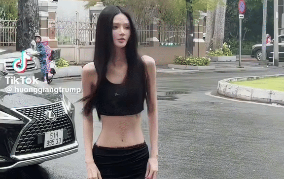 Chia sẻ đoạn video ghi lại khoảnh khắc sải bước trên phố mới đây, Đỗ Hương Giang thu hút hơn 2 triệu lượt xem bởi vóc dáng mảnh mai cùng tỷ lệ cơ thể siêu thực. Cô diện set đồ đen tối giản gồm áo crop top và chân váy dài ôm sát body, thiết kế cạp trễ giúp khoe trọn vòng hai siêu nhỏ cùng đường thắt eo sắc nét.