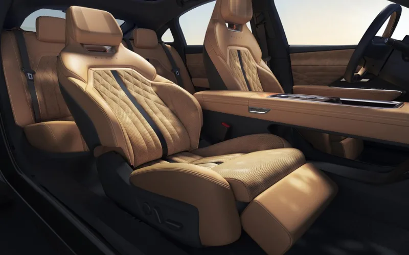 Phần đầu xe được trang bị hệ thống đèn ban ngày nối liền với lưới tản nhiệt cùng logo phát sáng, tạo nên một diện mạo thu hút. Điểm đáng chú ý nhất ở phần thân xe có lẽ là việc sử dụng camera bên để thay thế cho gương chiếu hậu truyền thống. Giao diện phía sau xe chưa được thể hiện rõ ràng, ngoại trừ thiết kế của cụm đèn hậu.