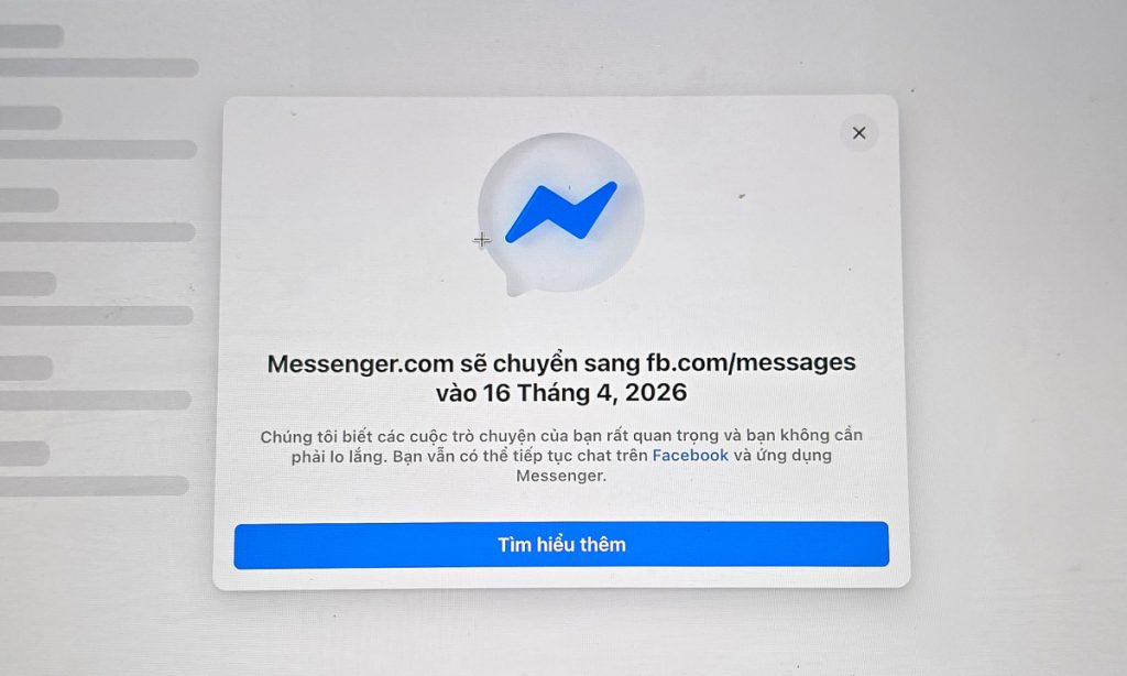 Giao diện Messenger hiển thị thông báo thay đổi địa chỉ khi người dùng truy cập, tháng 4/2026. Ảnh: Lưu Quý