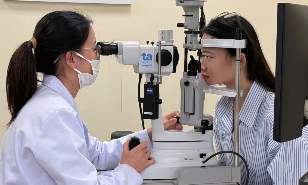 Bác sĩ Huyền khám mắt cho một phụ nữ. Ảnh: Bệnh viện Đa khoa Tâm Anh
