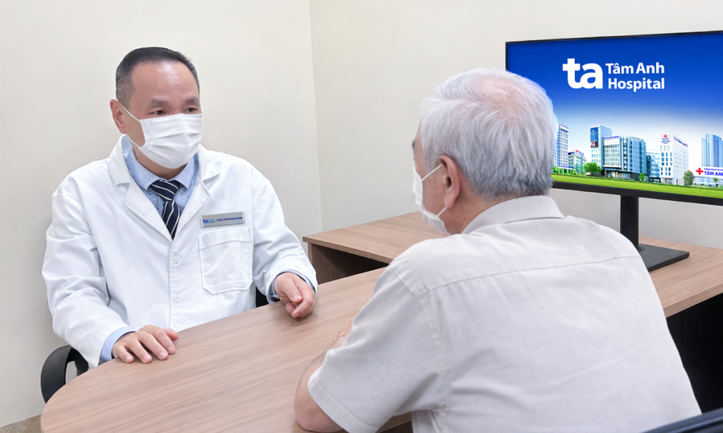 Bác sĩ Giang tư vấn cho người bệnh ở thời điểm tái khám. Ảnh: Bệnh viện Đa khoa Tâm Anh