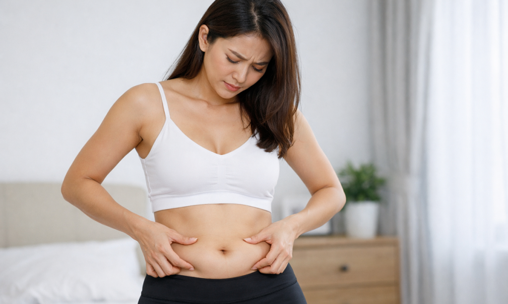 Bụng dưới phình to có thể gặp ở cả người thừa cân lẫn người có vóc dáng gọn gàng.