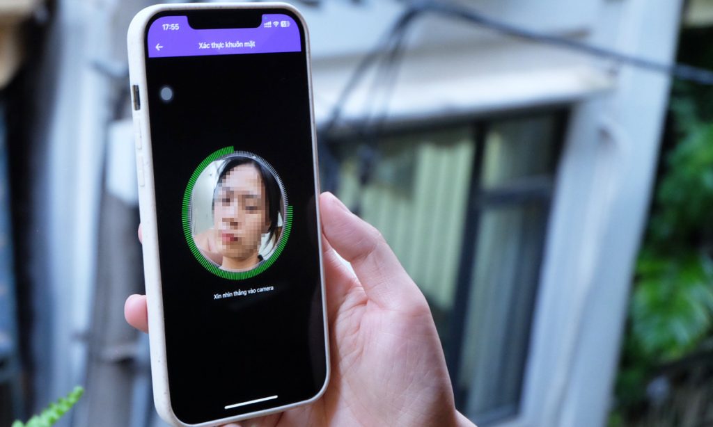 Người dùng đăng ký xác thực khuôn mặt trên một ứng dụng ngân hàng. Ảnh: Trọng Đạt