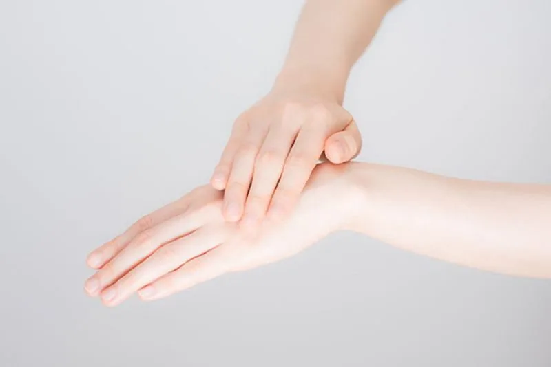 Lấy vài giọt vitamin E vào lòng bàn tay, nhẹ nhàng thoa lên mặt, đặc biệt các vùng mắt, trán và môi. Dùng đầu ngón tay massage để dưỡng chất thẩm thấu và để qua đêm.