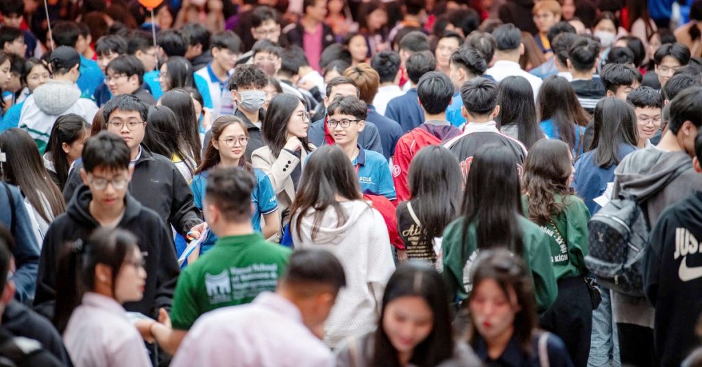 Đông đảo học sinh đến Ngày hội tư vấn tuyển sinh – hướng nghiệp 2026 tại Hà Nội sáng 8-3 – Ảnh: NAM TRẦN