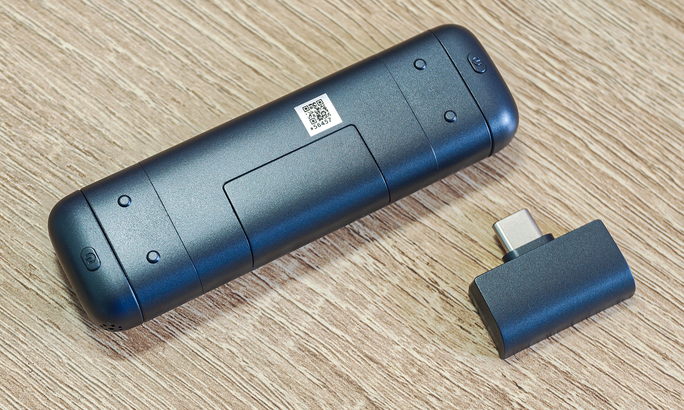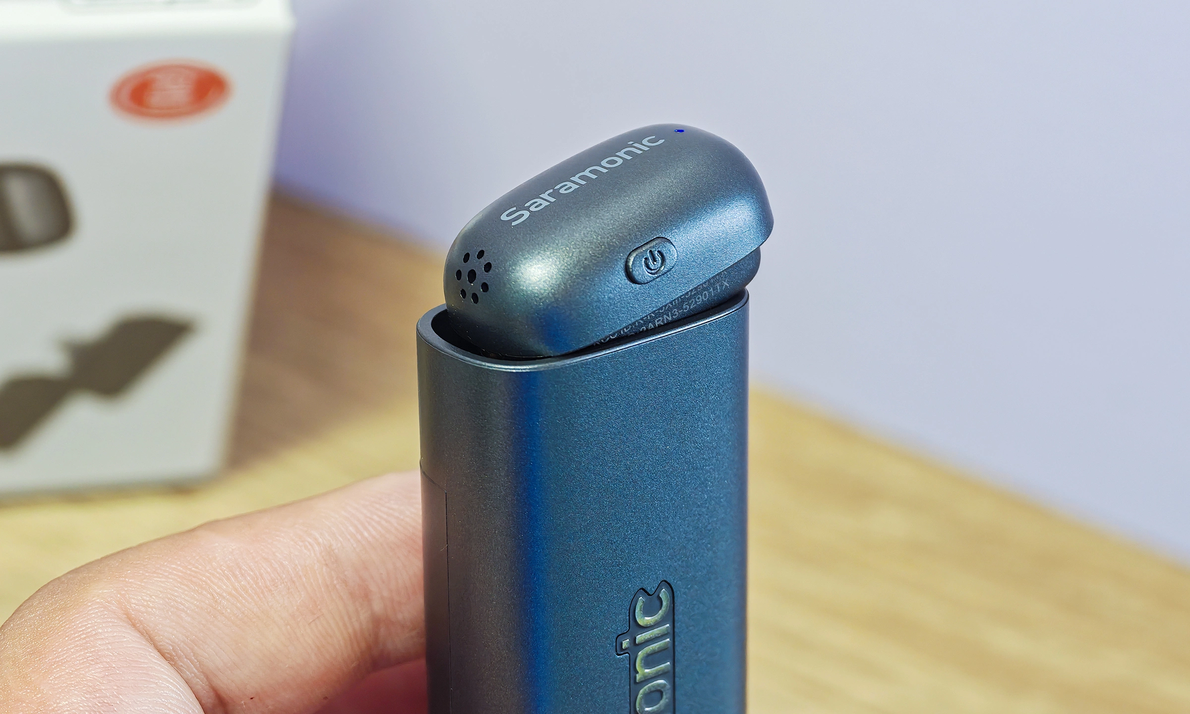 Trên thân transmitter có một phím duy nhất là phím nguồn cùng lỗ thu âm. Với trọng lượng 5 gram và tương đương đầu ngón tay cái, micro nhỏ và nhẹ hơn hầu hết sản phẩm trên thị trường, có thể đeo mà không gây chú ý trên khung hình, phù hợp khi quay TikTok, phỏng vấn đường phố hoặc vlog đời sống – xu hướng của thị trường gần đây khi thiết bị ghi âm trở thành một phần tự nhiên của quá trình sản xuất nội dung.