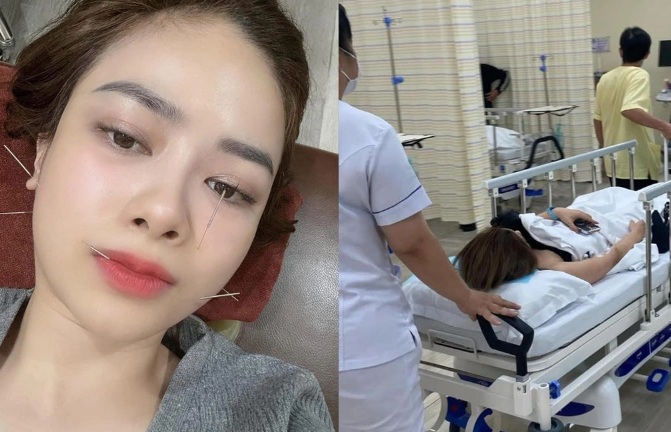 Dương Hoàng Yến chia sẻ hình ảnh cấp cứu lúc nửa đêm vì bị lệch mặt (Ảnh: Facebook nhân vật).