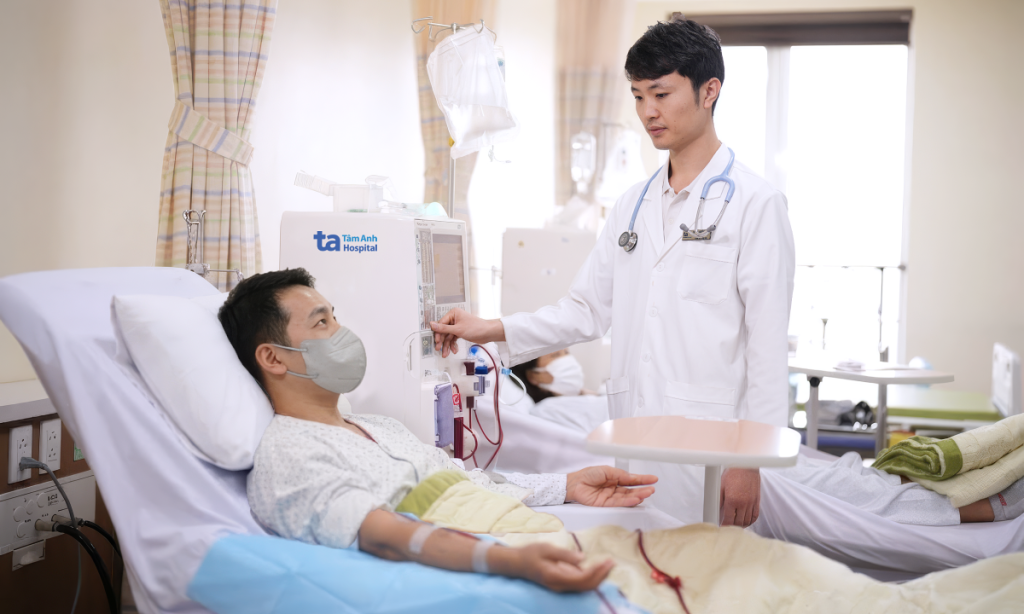 Hiện, anh Nam duy trì lọc máu 3 buổi một tuần, mỗi buổi kéo dài khoảng 4 giờ nhằm loại bỏ các độc chất, sản phẩm chuyển hóa và lượng dịch dư thừa tích tụ trong cơ thể. Song song, anh được tiêm thuốc kích hồng cầu, điều trị thuốc huyết áp, điều chỉnh rối loạn canxi – phospho theo chỉ định và tái khám chuyên khoa định kỳ.