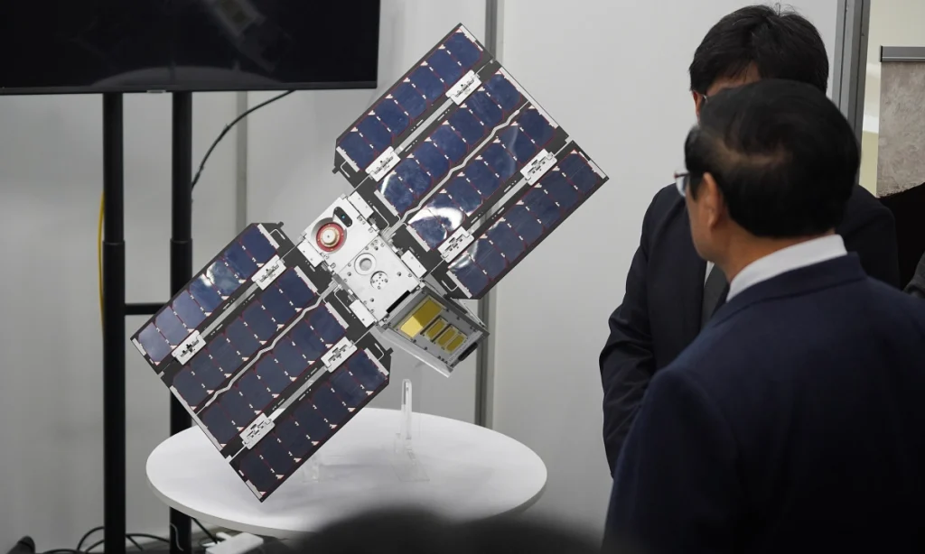 Một mô hình vệ tinh nhỏ của một công ty Nhật Bản được trưng bày tại triển lãm. Ảnh: Lưu Quý